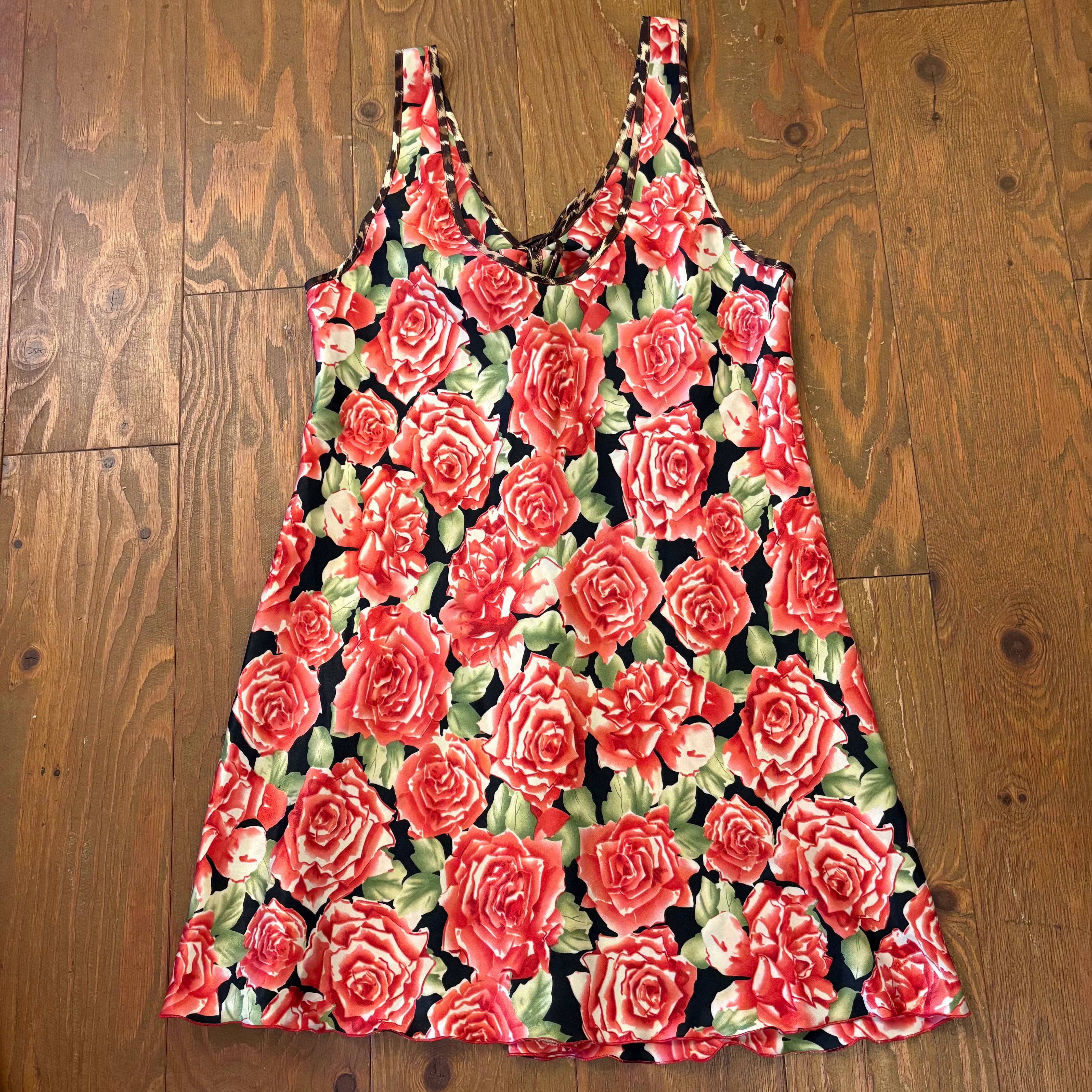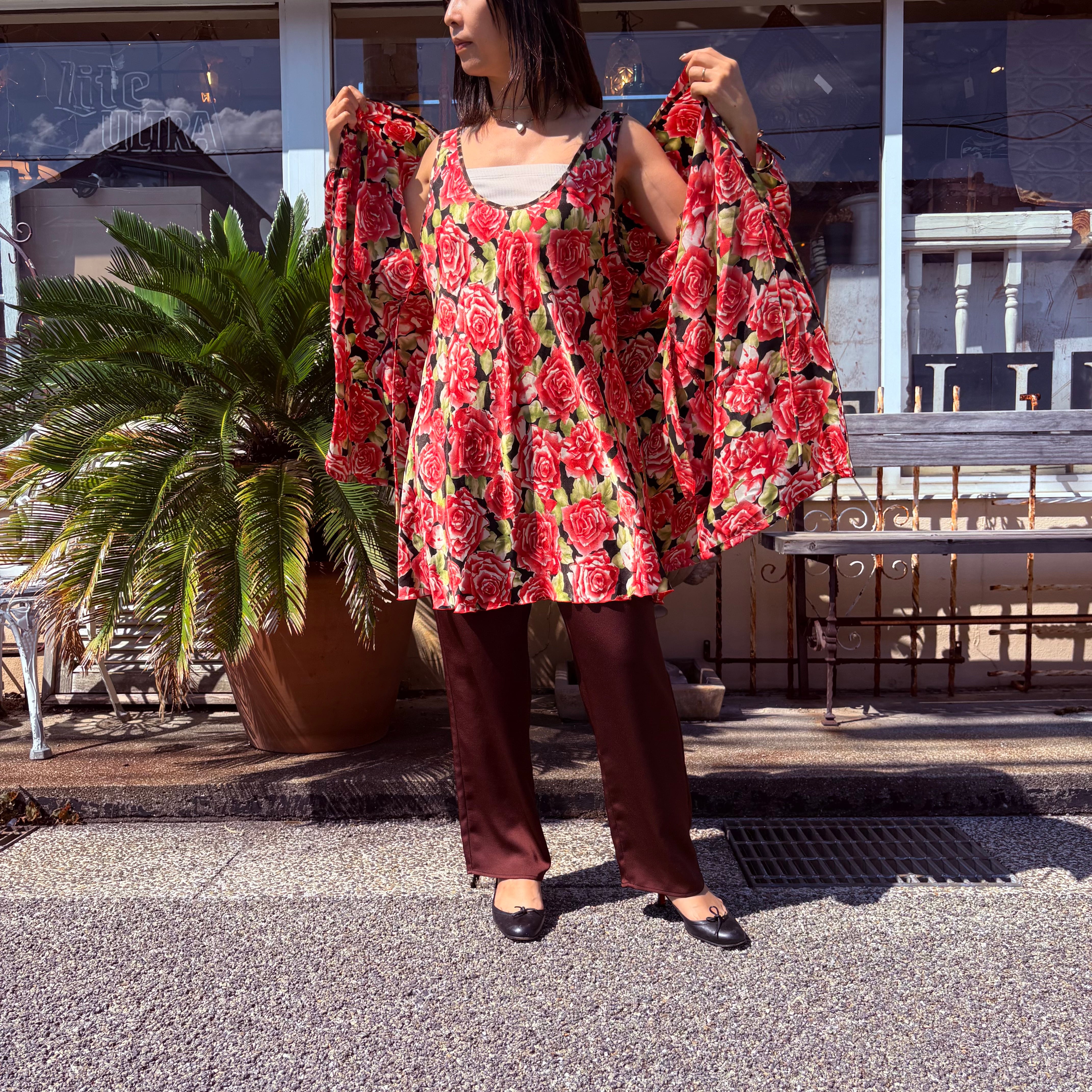薔薇のモチーフが魅力的なスリップドレスと羽織シャツのセットアップです。