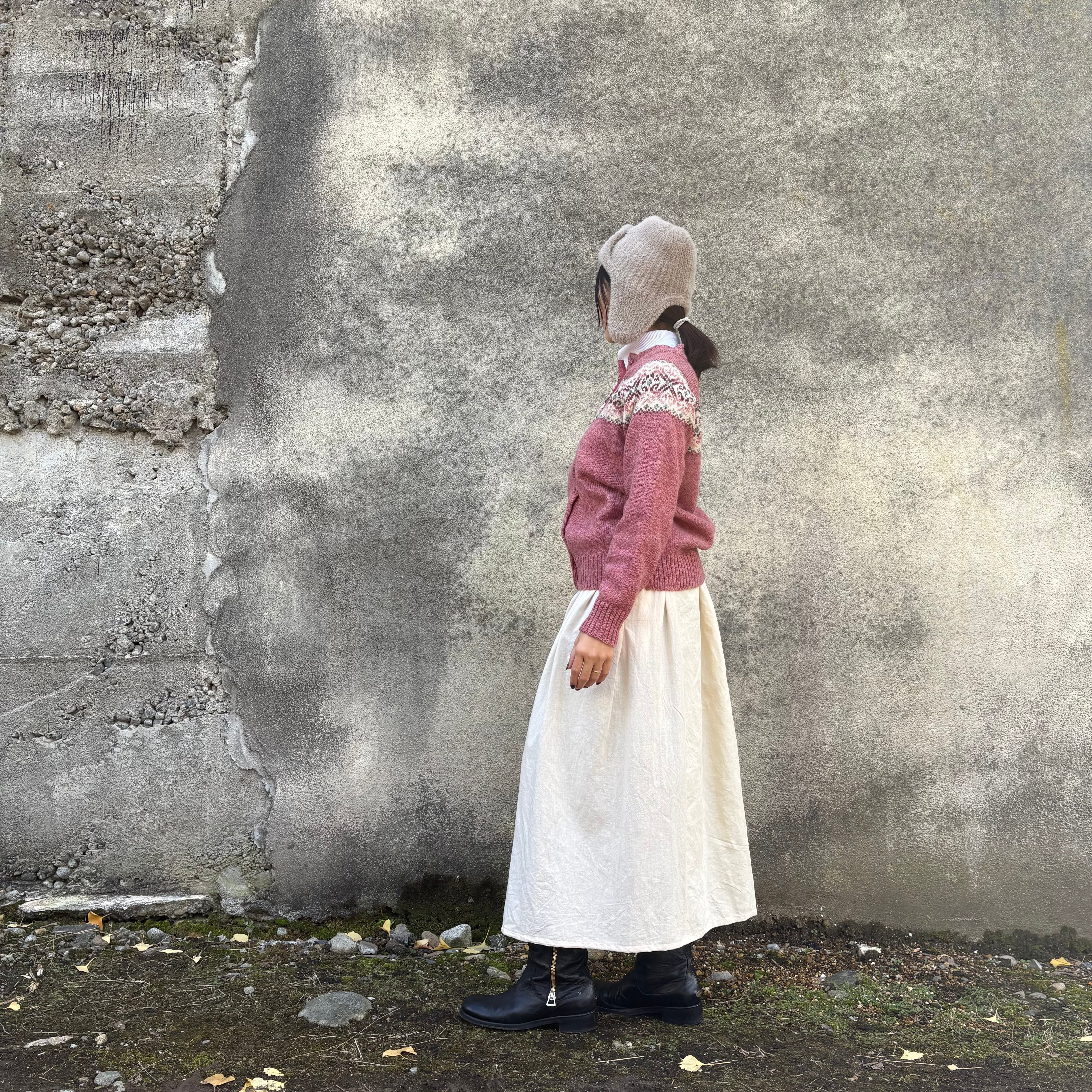 イギリス製のシェットランドウールを使用した素敵なヴィンテージニットです。猫目ボタンが付いており、ヴィンテージの魅力を引き立てています。優しい風合いのピンクカラーは、寒い冬の日々を明るく彩ることでしょう。薄手ですが、とても暖かいです。