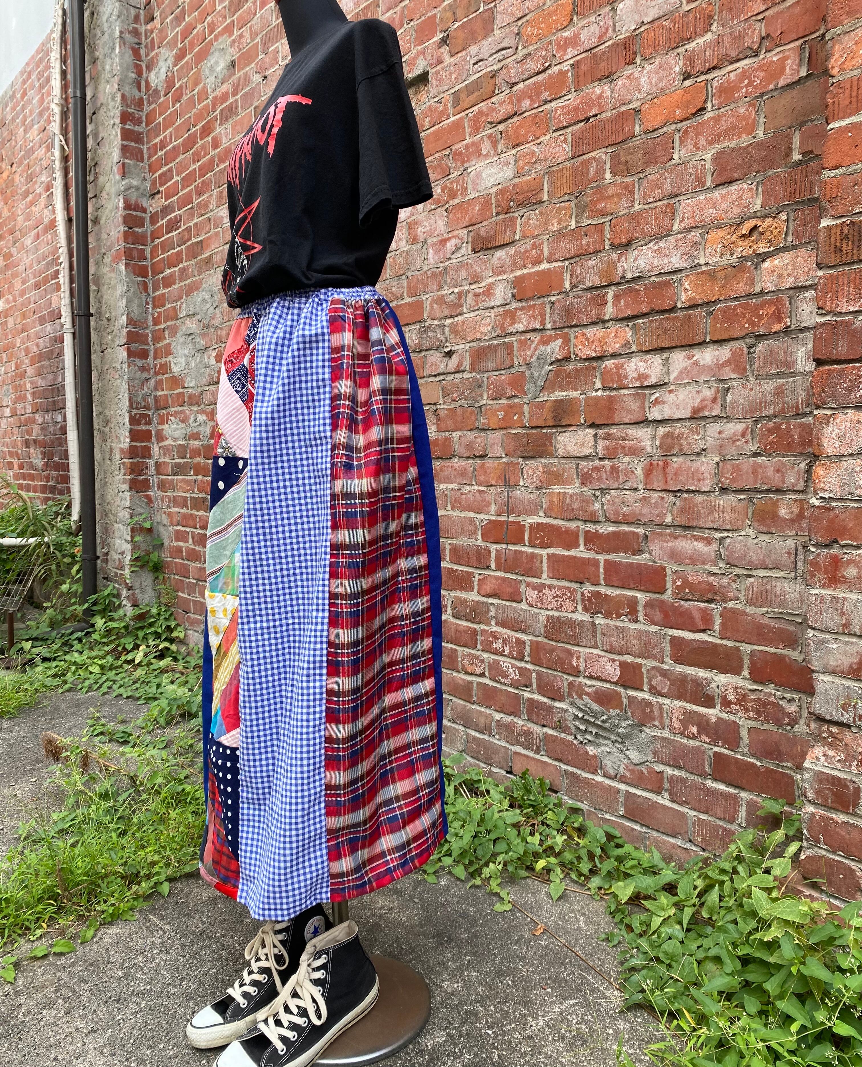 アメリカのヴィンテージパッチワーク生地を使用して制作したスカートです。