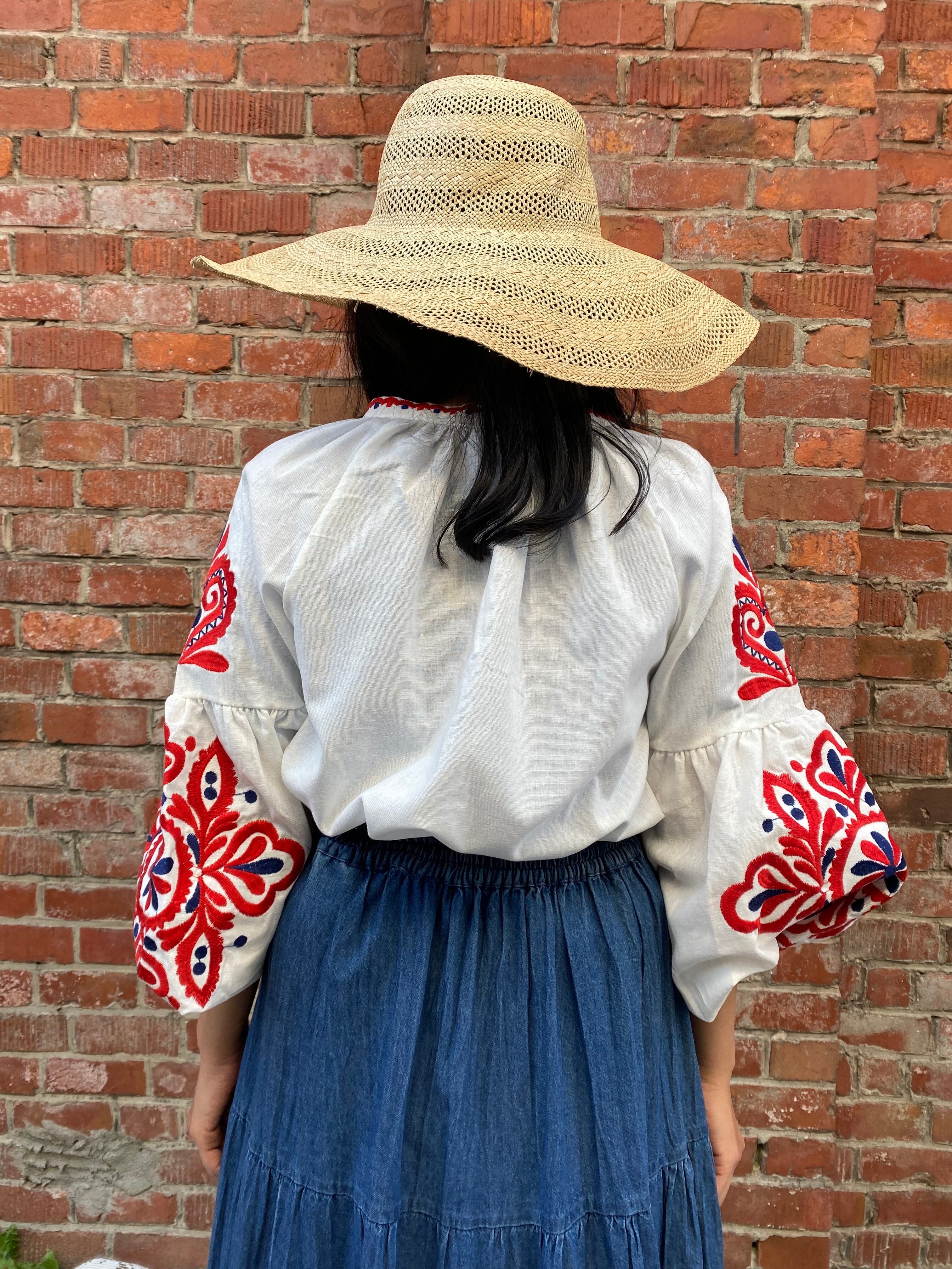 メキシコの伝統的な手仕事が生み出す、美しい刺繍ブラウス。一つ一つ手作業で織り上げられたブラウスは、華やかな雰囲気を演出しつつも、人気のあるフワッとした袖がトレンド感をプラスします。スカートにもパンツにも相性抜群。自然な落ち感のあるコットン生地は、着心地も抜群です。