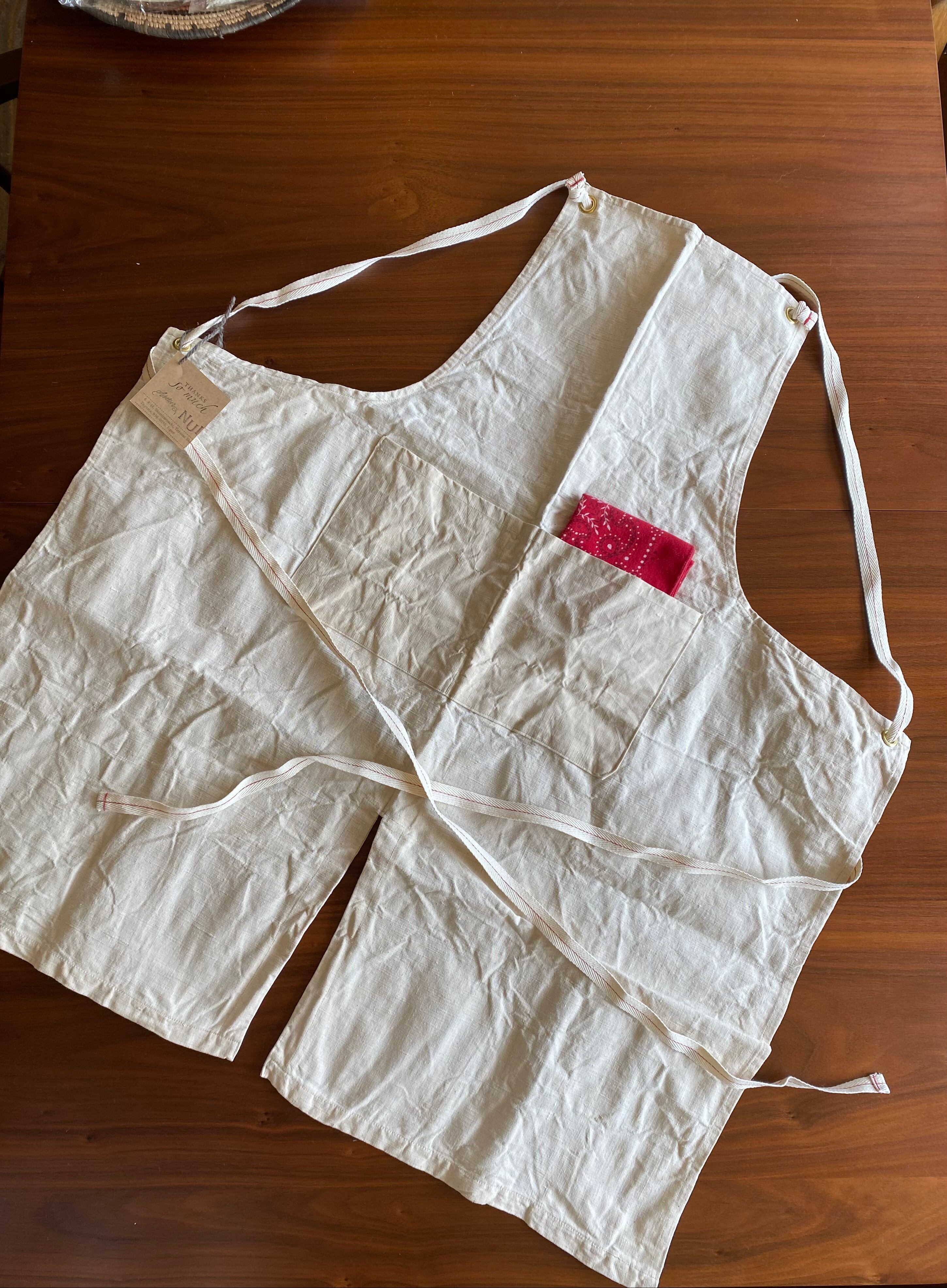 フランスのヴィンテージリネンを使い、制作したエプロン。