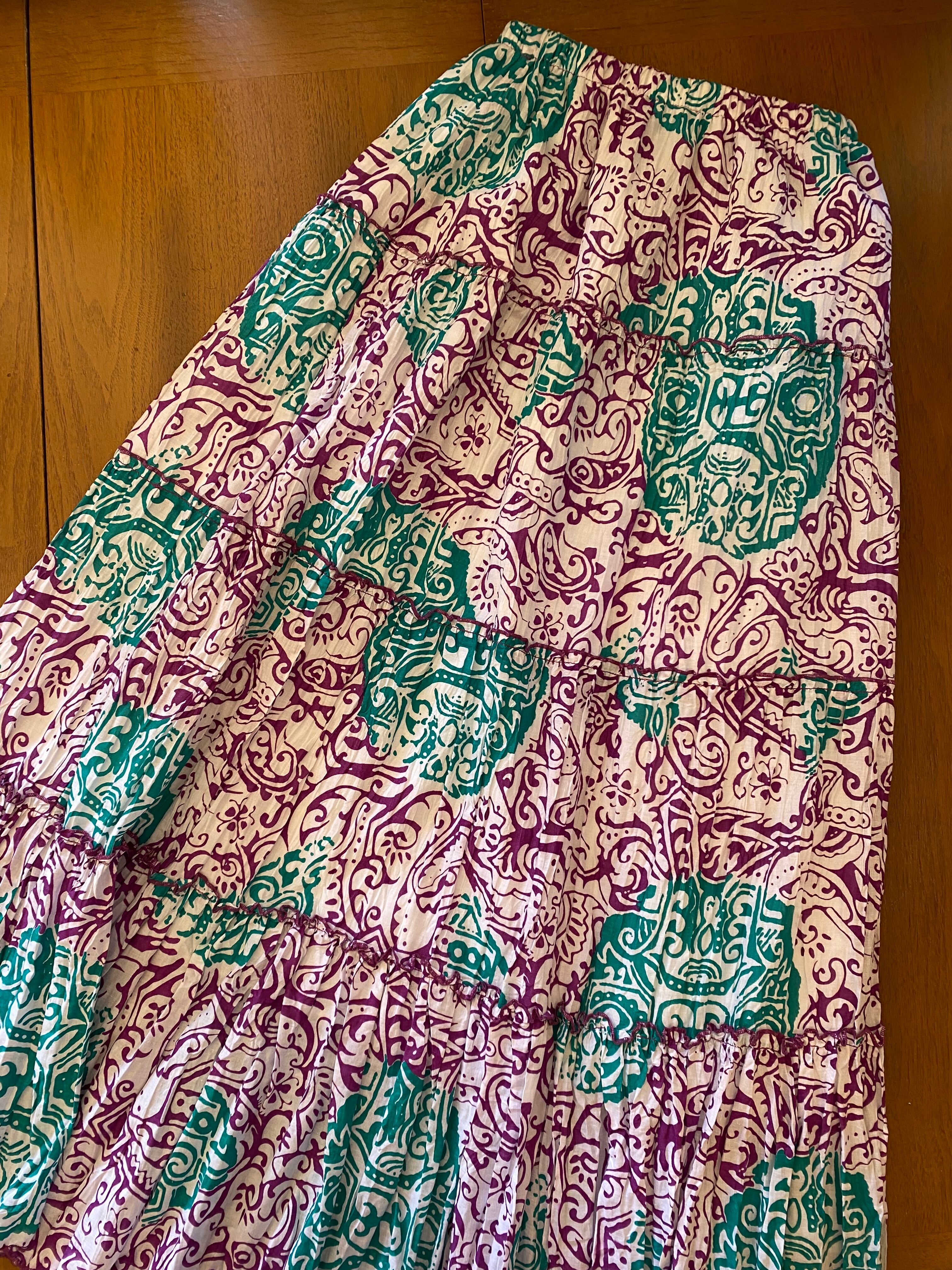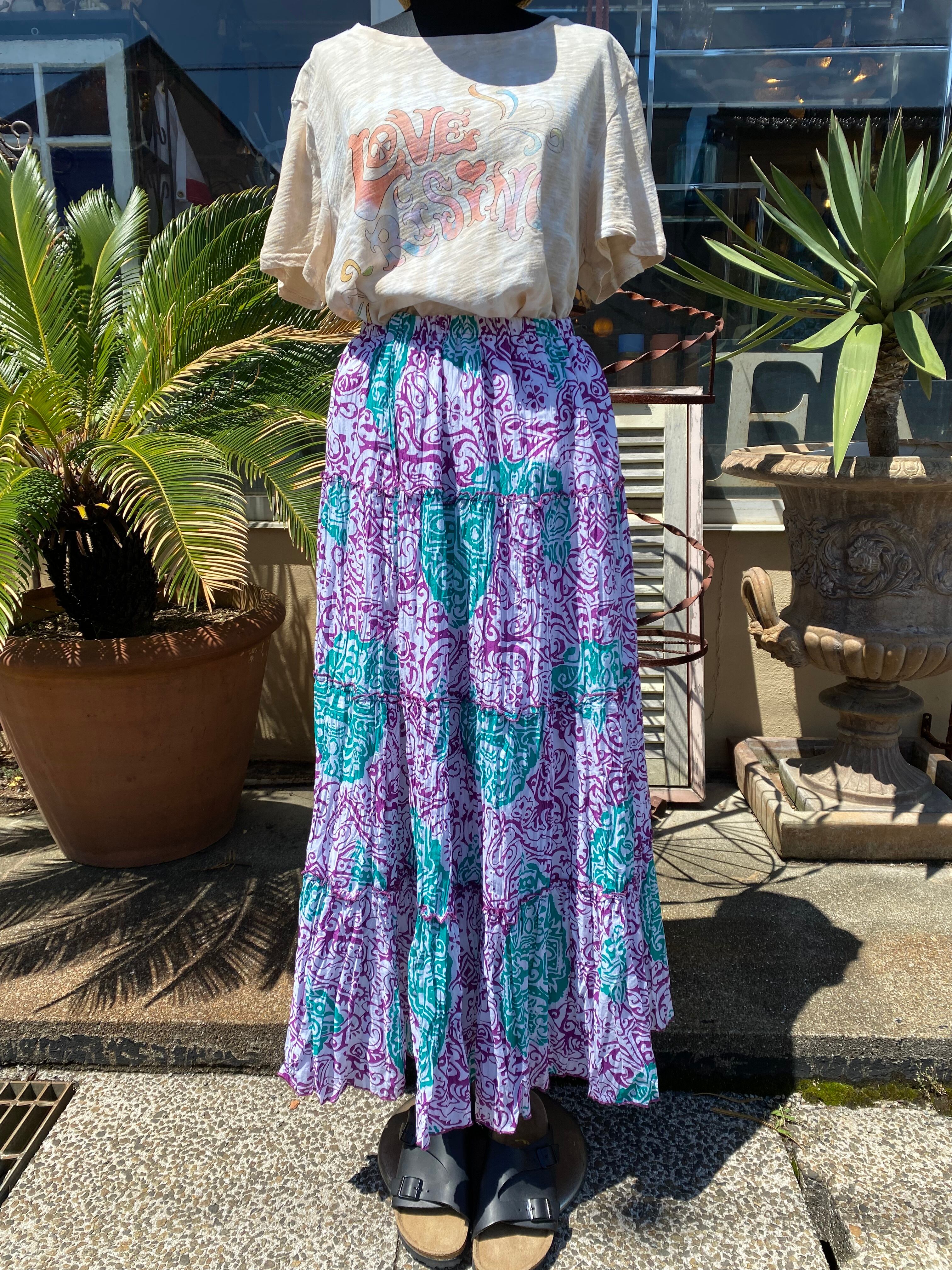 涼やかな着心地が魅力的なインド綿のロングスカートです。ティアード加工されたスカートが華やかな表情を作ってくれます。軽くて柔らかい素材感で、これからの暑い季節にぴったり。1枚でさらっと着こなせるデザインで薄い生地なのでコンパクトにもなりますので旅行やアウトドア、お出かけにも最適です。裏地付きです。