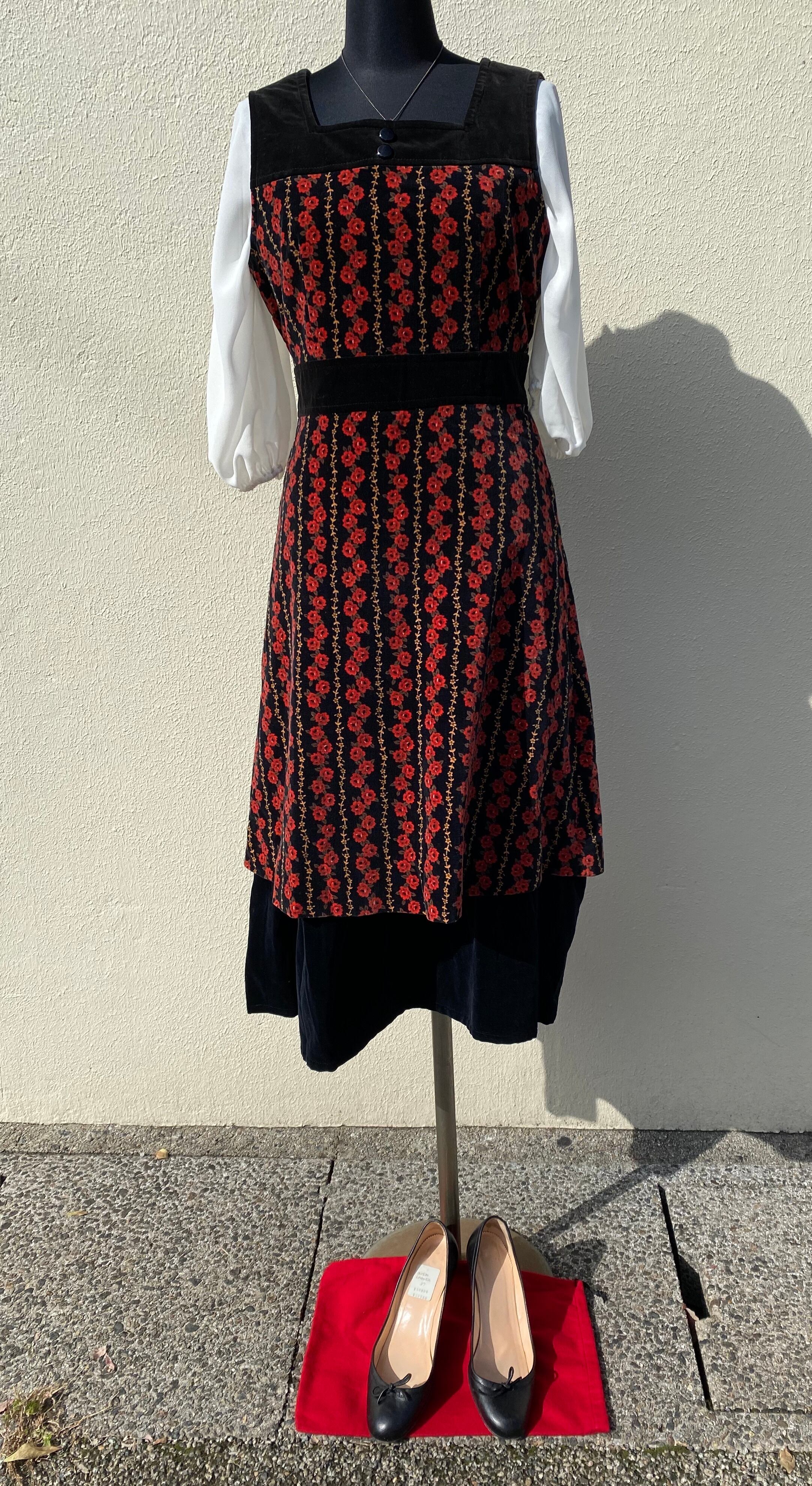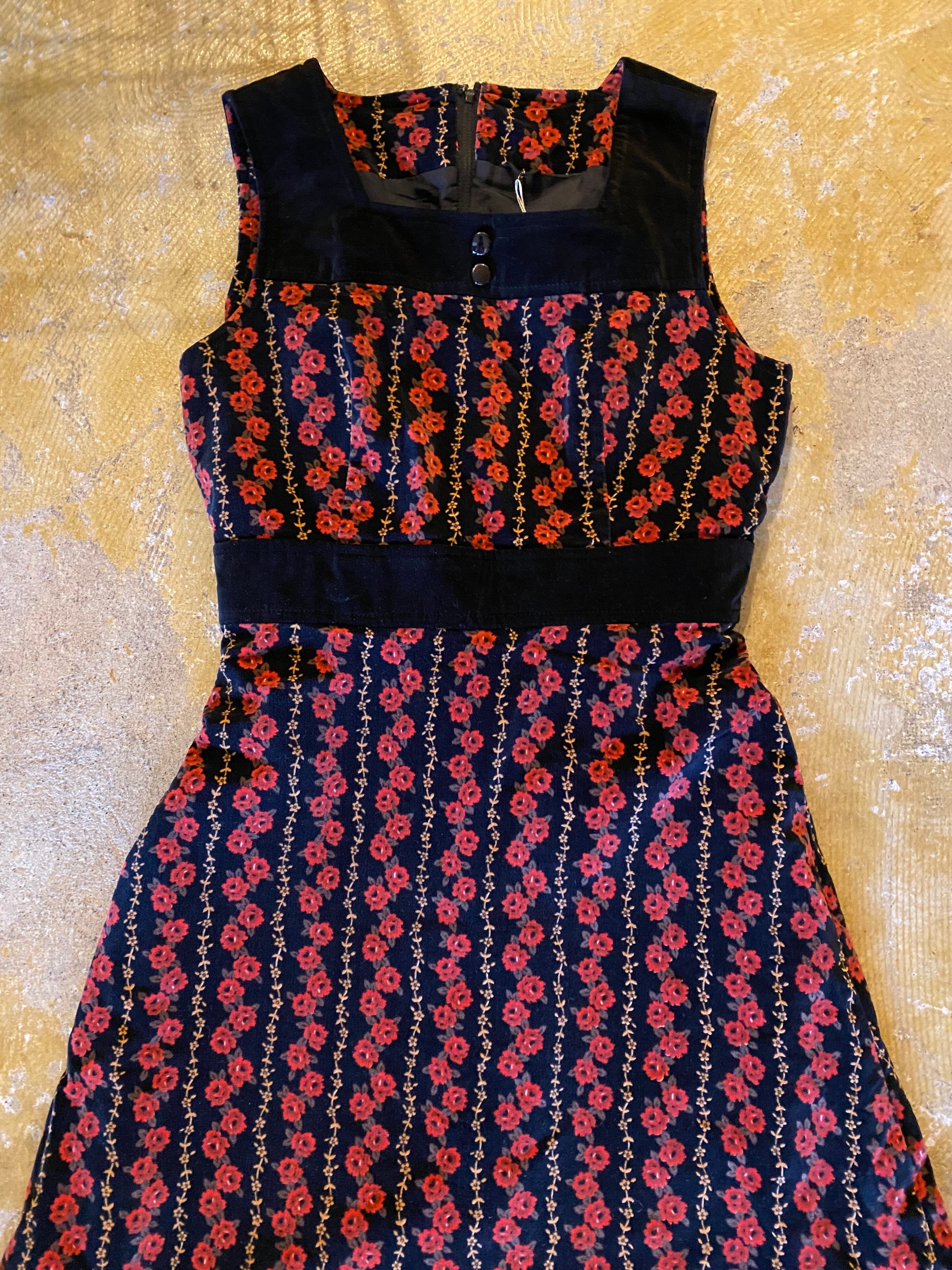 素敵なヴェルヴェットのヴィンテージワンピース。このワンピースは、華やかな薔薇の総柄が特徴で、ヴィンテージ感が漂います。とても珍しい柄です。他の人とは差をつけたい方にぴったりです。