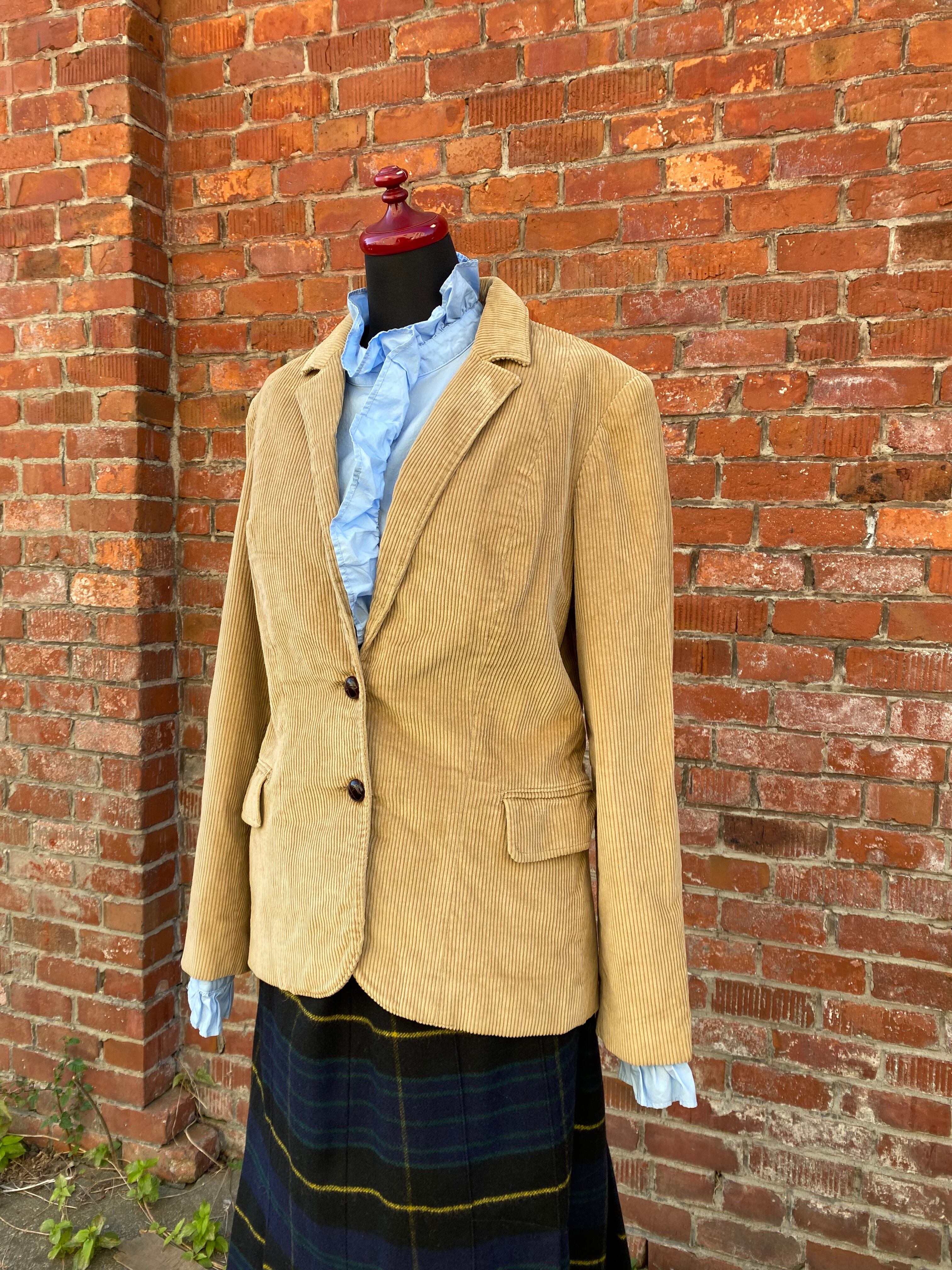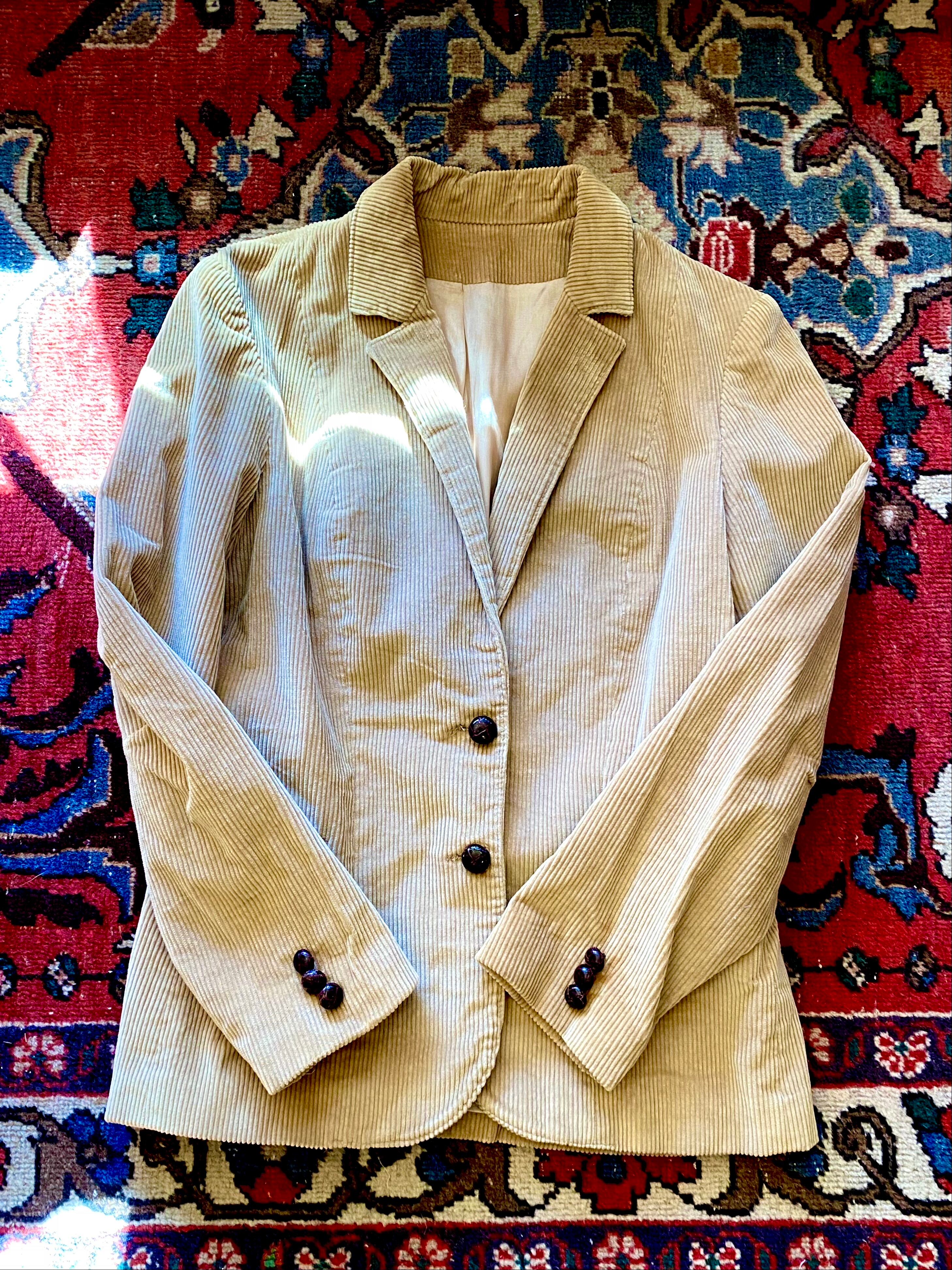 本革光沢ありのクルミボタンを使用した魅力的なコーデュロイジャケット。軽めの素材感で、着心地を実現しています。裏地はサテンを使用しております。