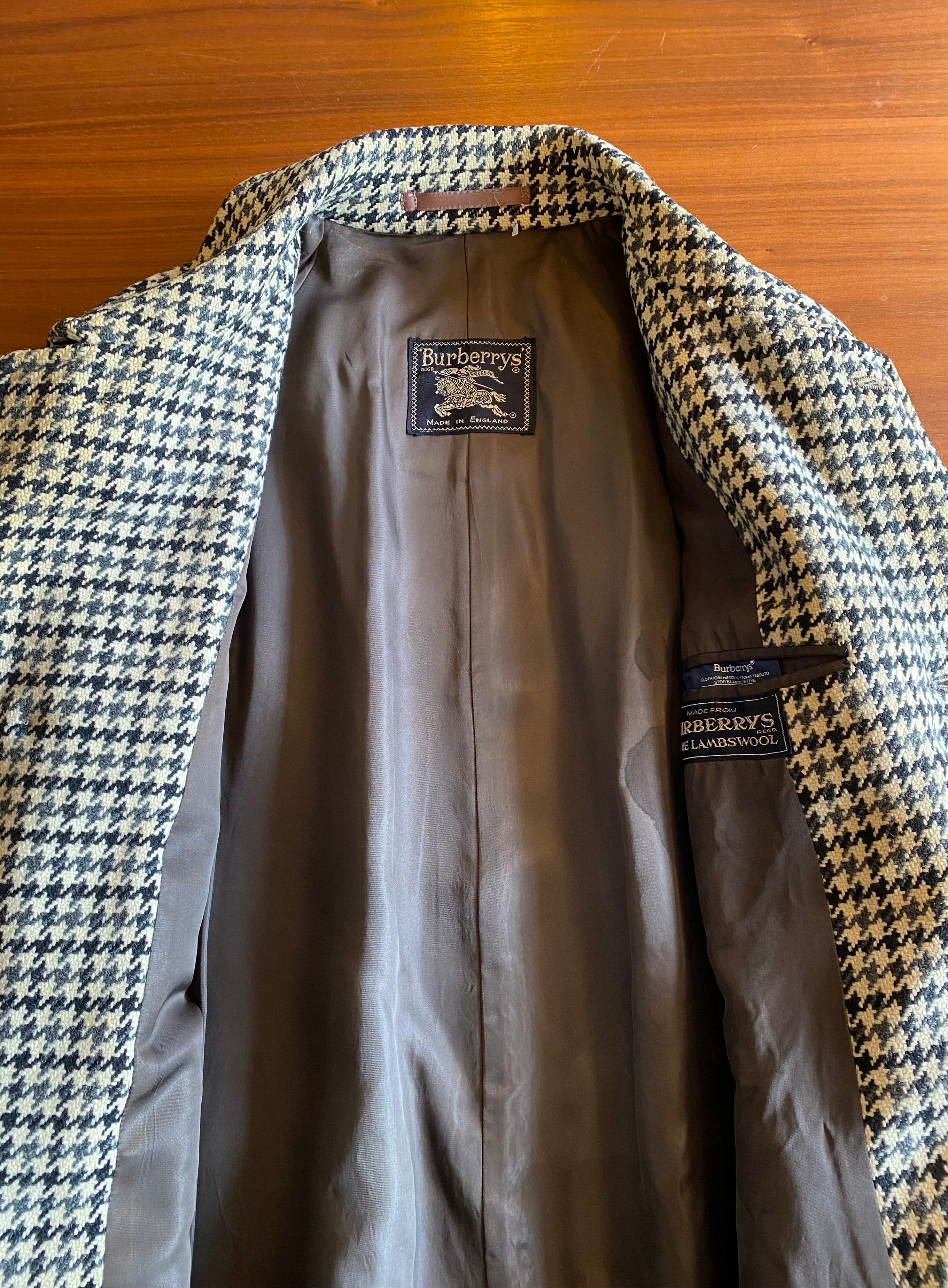 洗練された千鳥格子柄のバーバリーウールコートです。イギリスの上品なデザインと温かみのあるウール素材で、寒い冬のおしゃれを演出します。特に肩のラインは女性サイズに直してあり、美しいシルエットを作り出しています。