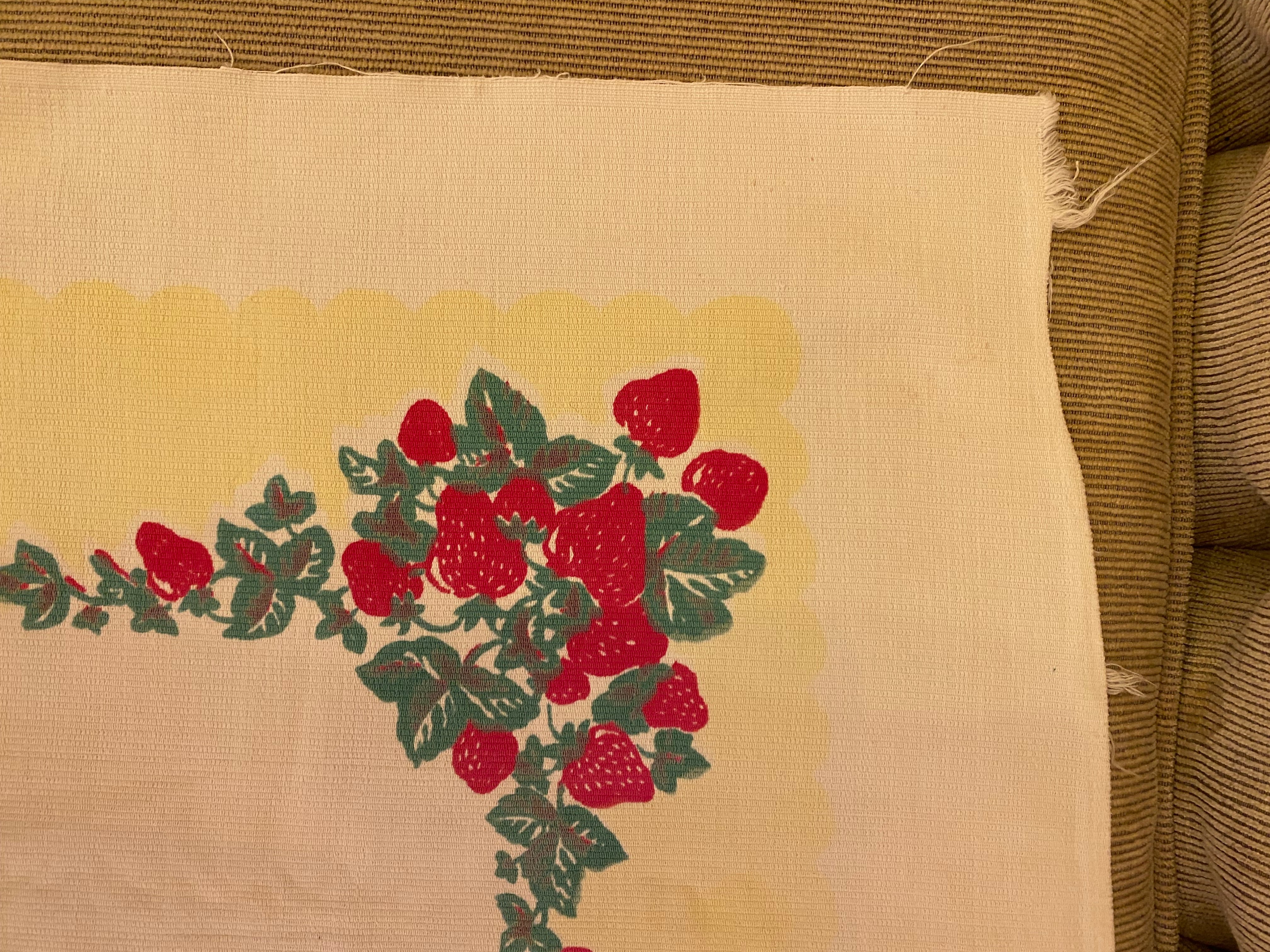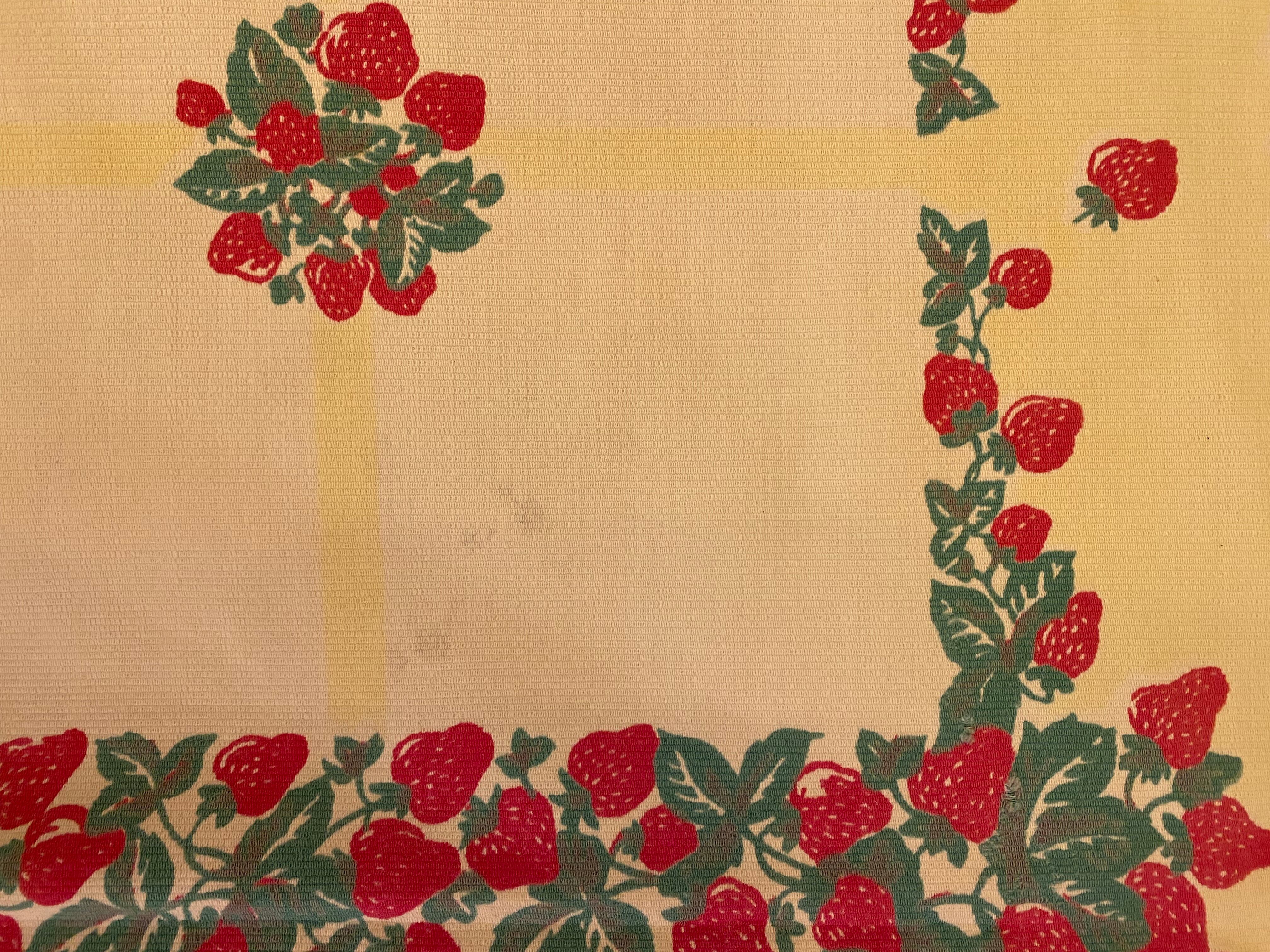 とても可愛い苺柄のテーブルクロスです。ヴィンテージならではの風合いや味わいも感じられる一枚で、おしゃれな空間作りにぴったりです。