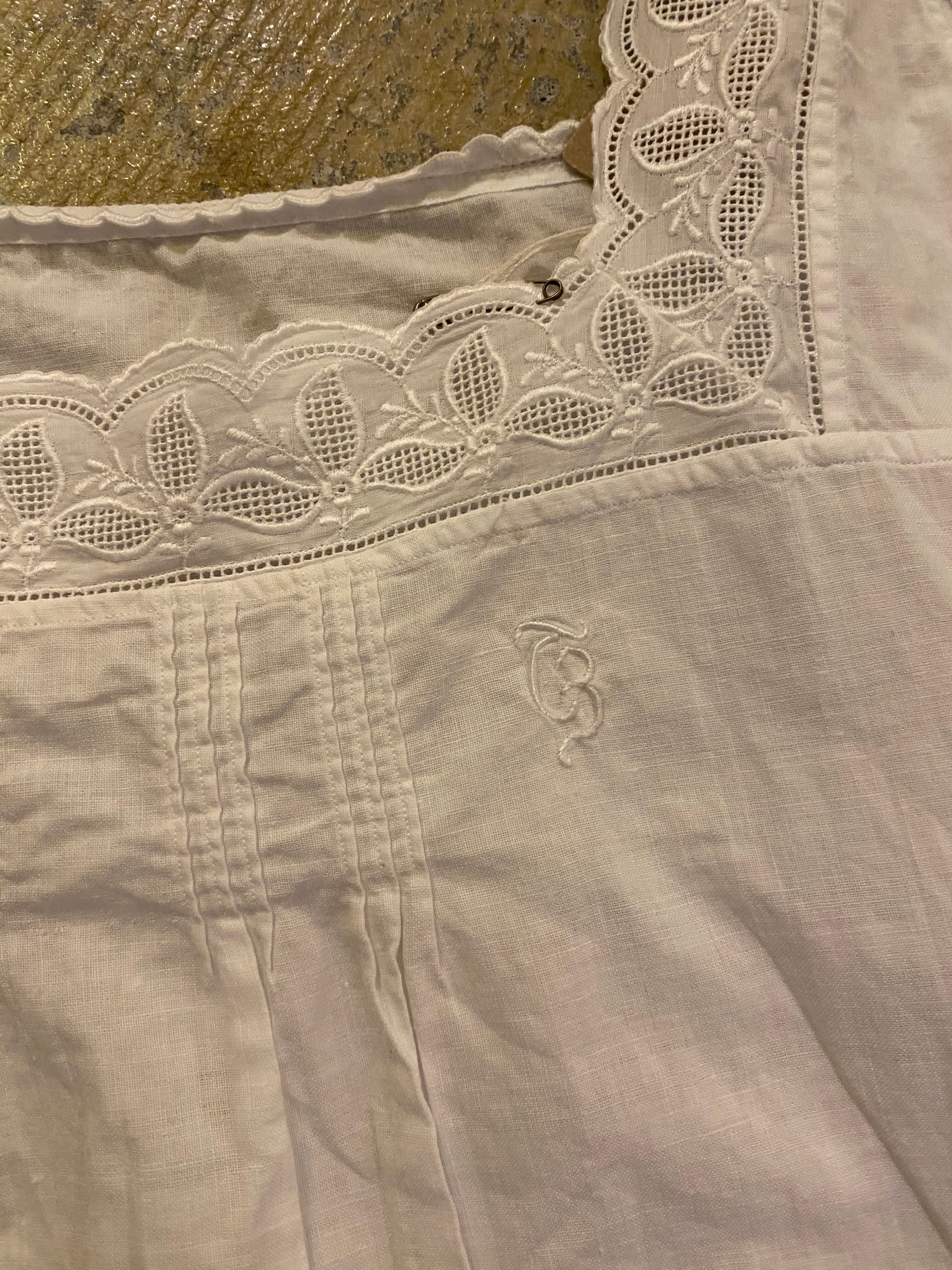 フレンチドレスの象徴でもあるモノグラムイニシャルの刺繍がワンポイントとなっております。