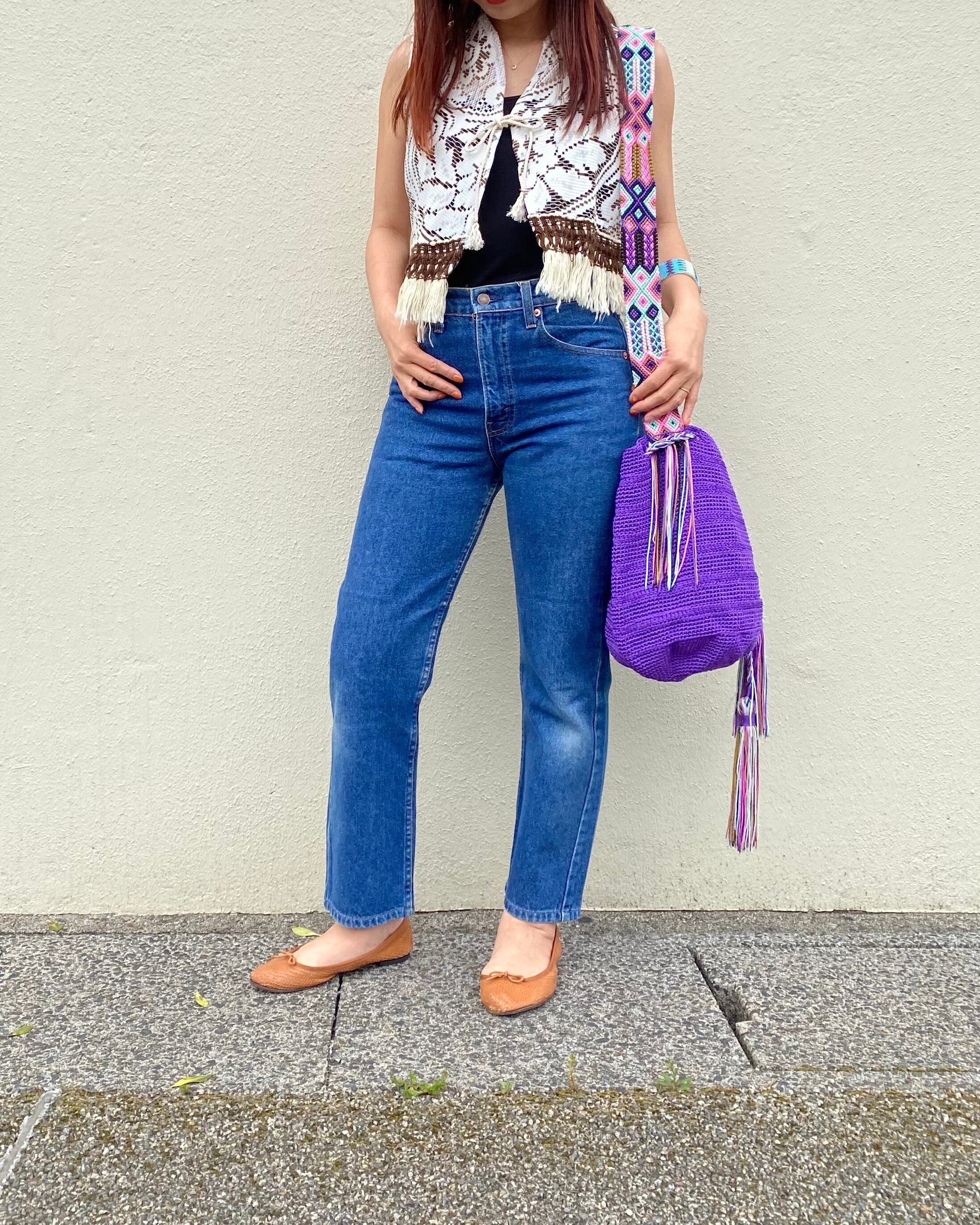 USED Levis505、オリジナルです。濃いめのインディゴカラーでシルエットもきれいにまとまります。丈感もちょうどよく、カジュアルからきれいめまで、様々なスタイルに合わせられます。
