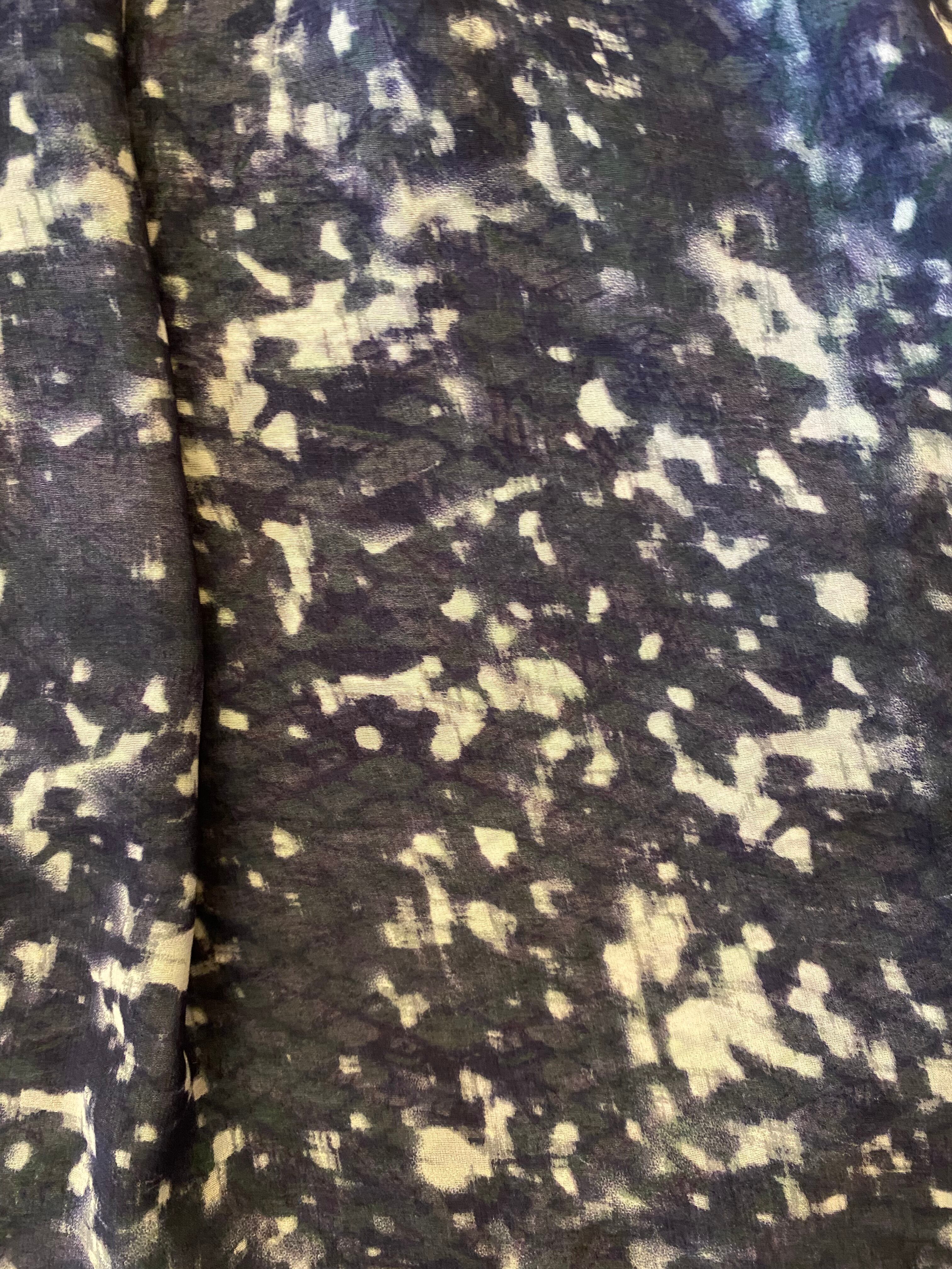 エキゾチックなパイソン柄のロングスカートです。ポリエステル素材で軽く、風になびくような素材感で、歩くたびに揺れる美しいシルエットを演出します。さらに、リバーシブル仕様で、裏面は黒スミのタイダイ柄になっており2つの異なるスタイルを楽しめます。